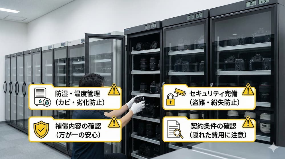 まずは保管場所の選択が重要です。高価なカメラは湿度や温度変化に敏感であり、適切な環境で保管しなければ劣化リスクが高まります。温度管理や防湿機能が整った保管施設を選ぶことが、商品価値を守るポイントです。