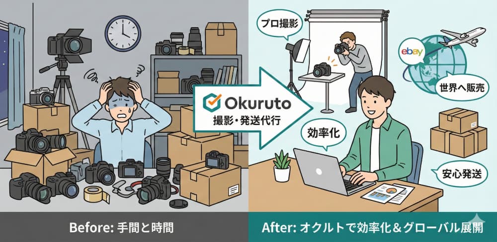 オクルトは中古カメラなどの商品をスムーズに海外市場へ展開するための撮影代行および発送代行サービスを提供しています。これにより、商品の魅力を最大限に引き出しつつ、発送に伴う手間やリスクを大幅に軽減できる点が大きな特徴です。