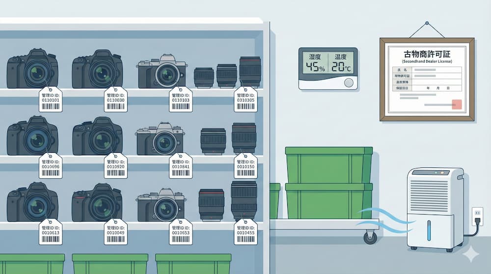 カメラ転売で安定した利益を上げるには、正確かつ効率的な在庫管理が欠かせません。その基盤となるのが、法律に基づく古物商許可の取得と、体系的な商品管理体制の構築です。中古カメラを取り扱う場合は、警察署で申請を行い、古物商許可を取得しなければなりません。無許可での営業は、3年以下の懲役または罰金という厳しい罰則が科されますので注意が必要です。
