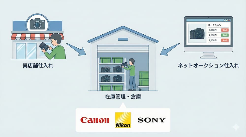 仕入れを行う際は、Canon EOS KissやNikonといった国内外で人気のあるブランドに絞ることが有効です。人気メーカーの商品は市場での需要が安定しているため、在庫の回転率が高くなりやすい特徴があります。加えて、こうしたブランドはリセールバリューも比較的高いため、資金繰りの面でもプラスに働きます。取扱商品を絞ることで、在庫管理の精度も向上し、商品管理番号の付与や品質管理の効率化が実現します。これにより、転売リスク回避にもつながるため、安定した経営基盤づくりに役立つでしょう。