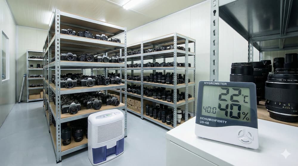 カメラ転売倉庫で最も注意すべきポイントのひとつに、湿気対策があります。電子部品やレンズは湿気に弱いため、適切な湿度管理は商品の価値を守る上で必須です。具体的には、除湿機の設置や空調管理、人の出入りを制限した管理体制を整えることが求められます。