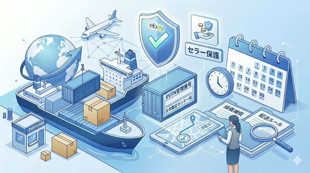 セラーはEVTN管理番号を配送ラベルに必ず記載し、推奨された配送業者を利用することが求められています。これにより、配送状況が一元管理され、商品の紛失や破損リスクを最小限に抑えられます。また、配送中の損傷に関してはeBayが補償を行うため、セラーの負担が大幅に軽減される点も大きな特徴です。