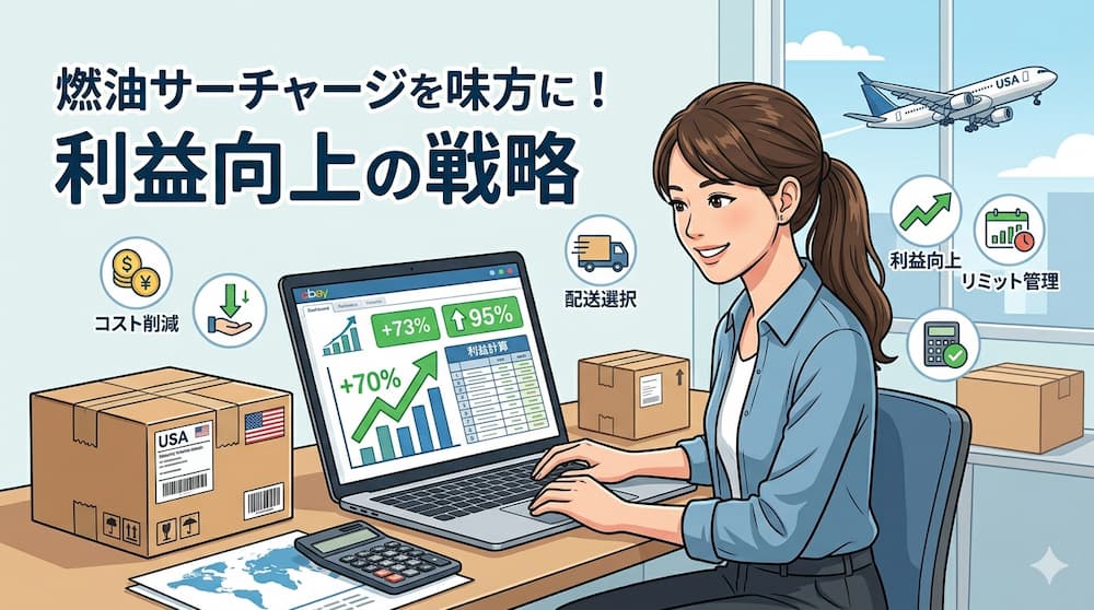 さらに、eBay輸出は複雑な手数料や送料、為替変動の影響が大きい一方で、正確な利益計算と適切な発送戦略、リミット管理を徹底すれば、個人でも安定的な利益を上げられます。法的リスク回避や業務の外注化も考慮して長期的に取り組むことが、燃油サーチャージ対策として重要なポイントとなるでしょう。