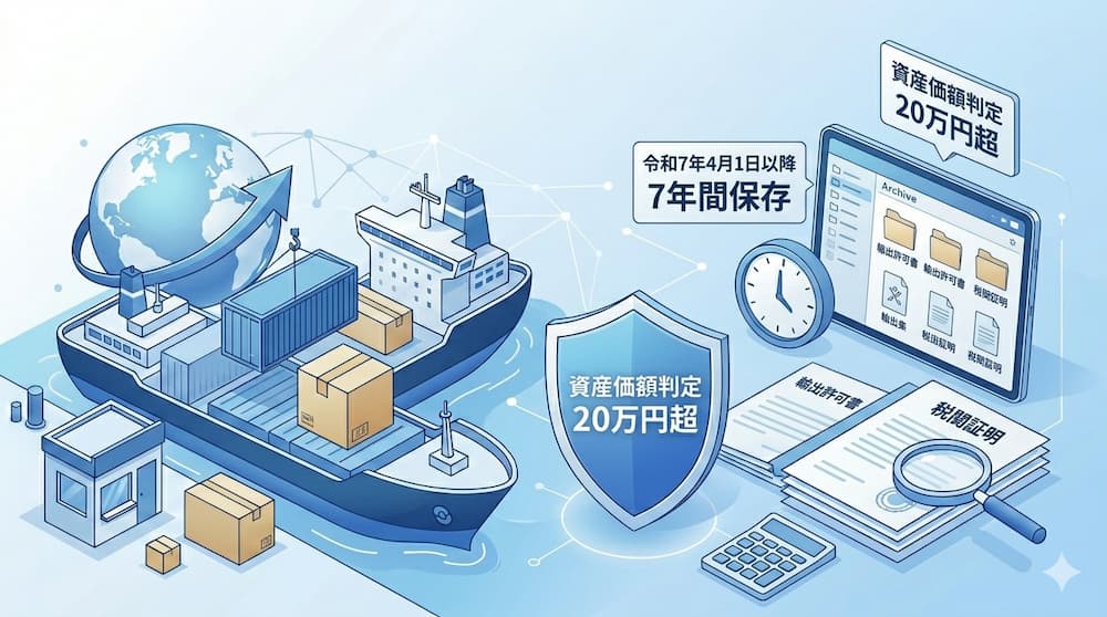 このように輸出免税はルールが厳格であり、輸出許可書や税関の証明書類などの適切な書類保存が不可欠です。これらの書類は令和7年4月1日以降、7年間の保存義務が課せられており、郵便物の輸出にかかわる書類も資産価額が20万円を超えるかどうかで保存内容が変わることから、細かい管理が求められます。