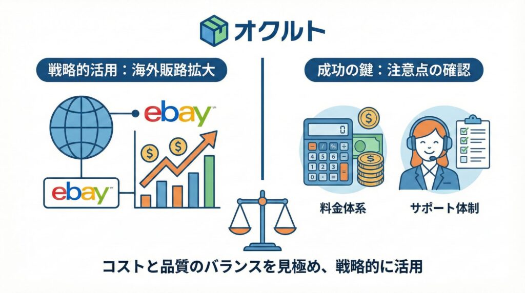 さらに、発送代行サービスの選択肢には個人代行もありますが、情報漏洩リスクや取引の安定性を考慮すると、実績豊富なオクルトのような法人サービスを活用するメリットは大きいです。これらを踏まえ、料金とサポートのバランスを重視した運用が成功の秘訣と言えるでしょう。