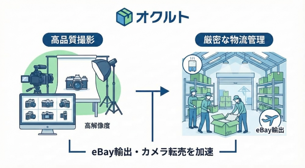 オクルトを効果的に活用することで、撮影品質の向上と物流効率化による販売促進が期待でき、eBay輸出やカメラ転売におけるビジネスの成功を後押しします。