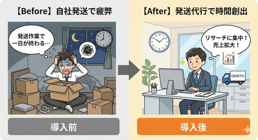 発送代行は、商品のピッキングから梱包、発送まで一貫して行ってくれるため、事業者が本来注力すべきリサーチや仕入れに充てる時間を大幅に確保可能です。